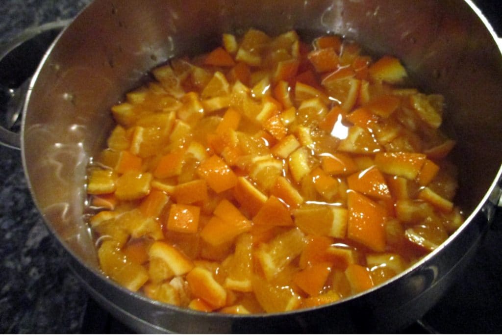 Luego me encontré con algunas recetas que no requerían el uso de pectina ya que está presente en la parte blanca bajo la cáscara de la naranja, algo que yo no sabía. Así que me limité a usar solo dos ingredientes, ¡agua excluida! Una receta en particular me llamó la atención y la usé para los ingredientes y el procedimiento, pero la simplifiqué aún más reduciendo el trabajo y el tiempo de preparación a solo 5 minutos.
