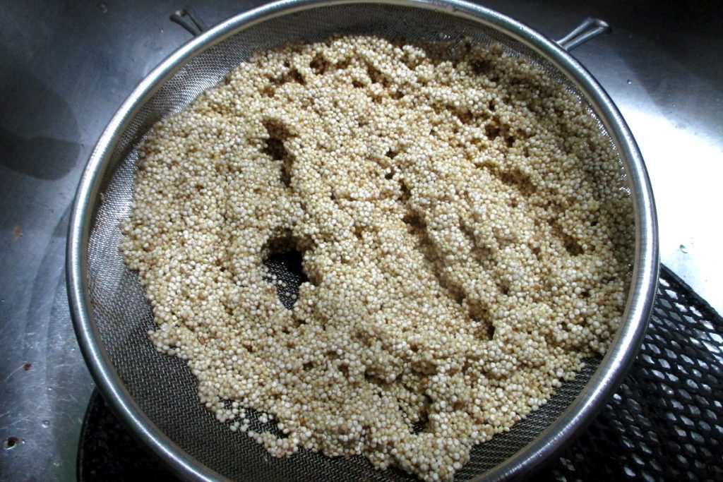 Yo empecé con 200g de quinoa y la regla es 2 partes de quinoa y 3 partes de agua.