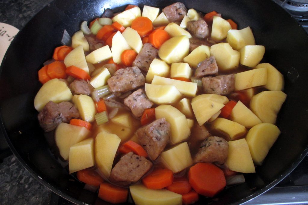 • Y aquí está el estofado de seitán listo para servirse. ¡Qué buen aroma en la cocina!