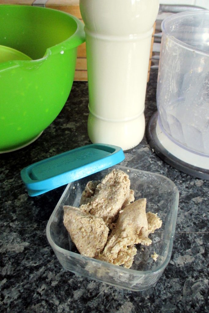 • Este es el residuo que queda en la bolsa, es decir las fibras. Puedes utilizarlo para hacer pan, focaccias e incluso dulces agregándolo a la masa junto con la harina. Puedes conservar la okara varios días en un tarro de vidrio en la nevera si no la vas a usar inmediatamente.