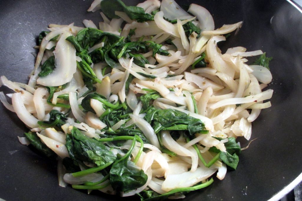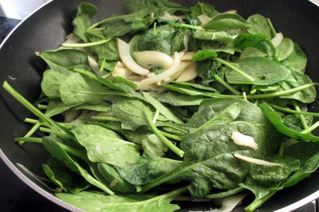 Pon las espinacas en la cacerola y deja que se ablanden removiendo durante un par de minutos.