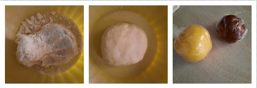 Ahora envuelve cada trozo de masa quebrada con film transparente y deja reposar en la nevera durante 20-30 minutos.