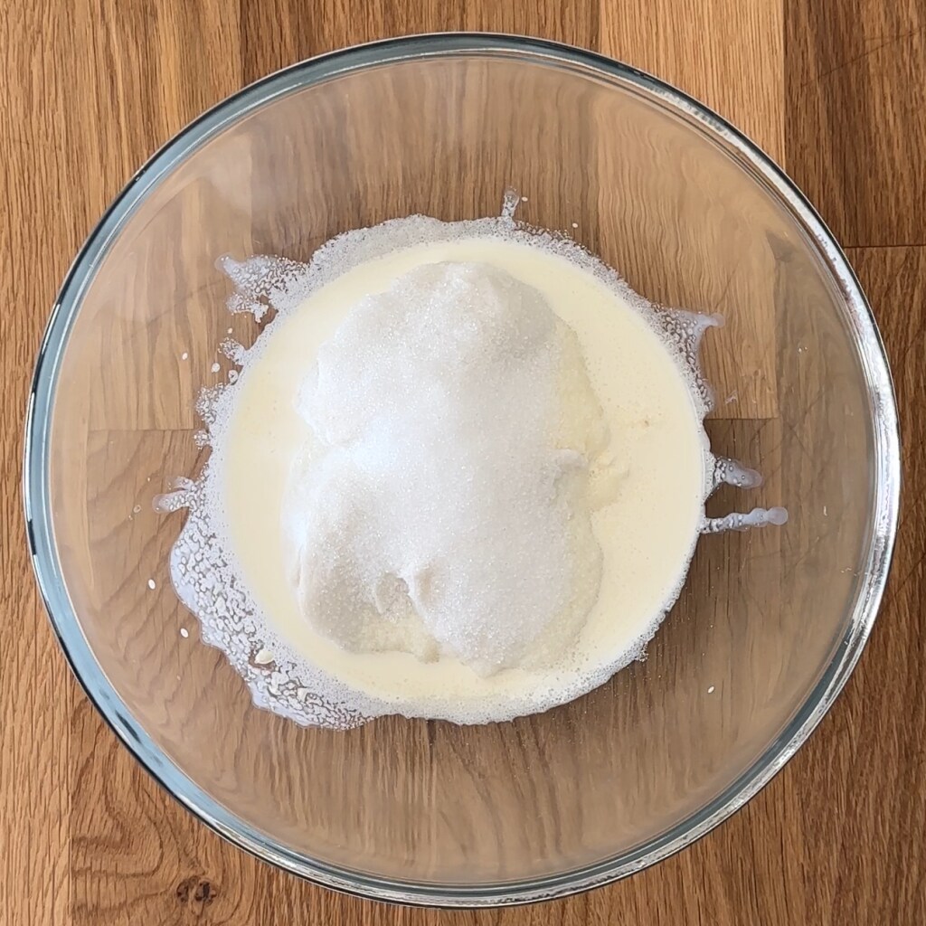 Vierte la nata, la leche de coco y el eritritol en el bol.