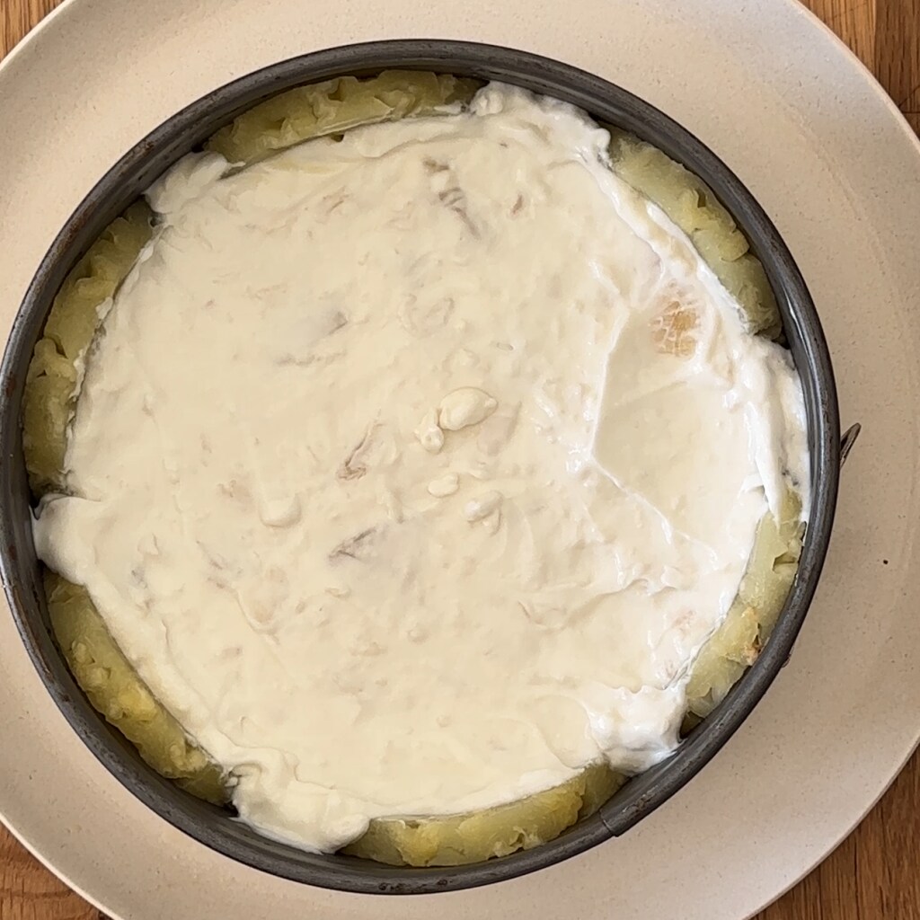 La base de la tarta fría está lista para ser decorada y puesta en el frigorífico.