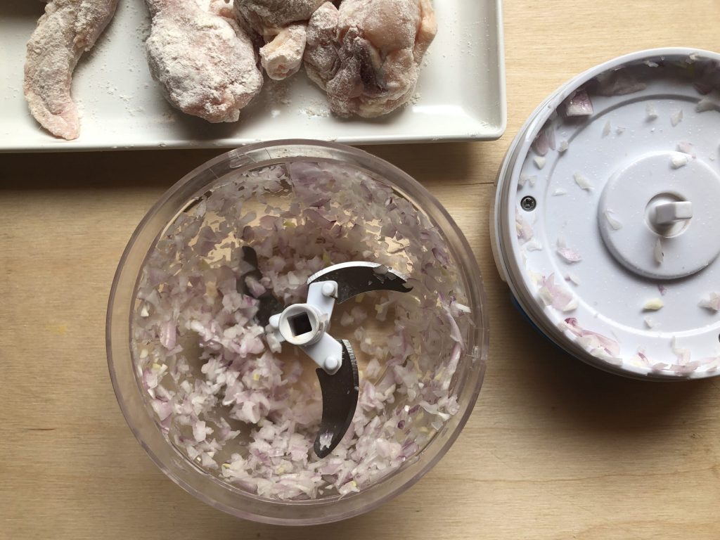 • Pelar la chalota y picarla finamente. Yo he usado un picador manual de cuerda que encuentro realmente comodísimo. Si deseas comprarlo lo puedes encontrar haciendo clic AQUÍ.