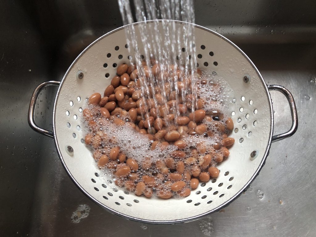 • Escurrir las alubias borlotti del líquido de conservación y enjuagarlas abundantemente bajo agua corriente.
