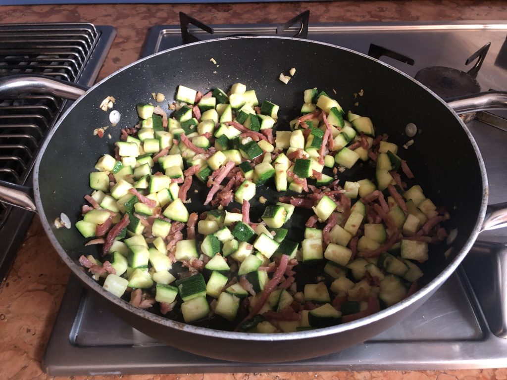 • Dorar durante un par de minutos y luego añadir los calabacines.
