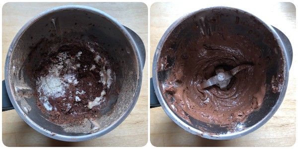 Es el momento de añadir la harina, el cacao amargo, una pizca de sal, la levadura y la leche. Amasar todo durante 40 segundos a velocidad 5, recogiendo la mezcla hacia el centro del vaso después de los primeros 20 segundos.