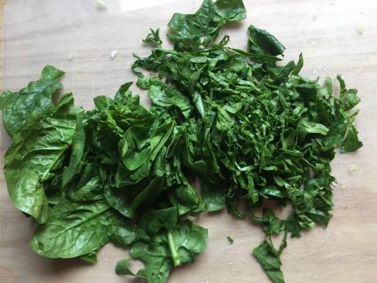 Lavar muy bien las espinacas bajo agua corriente y cortarlas en trocitos.