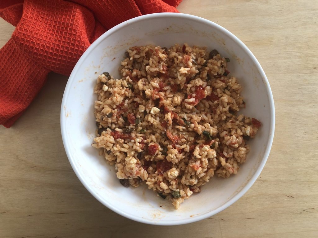 Preparación del arroz frío a la mediterránea