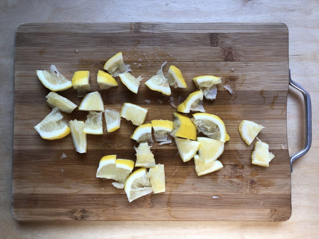 Lavar el limón, cortarlo en trozos y eliminar todas las semillas.