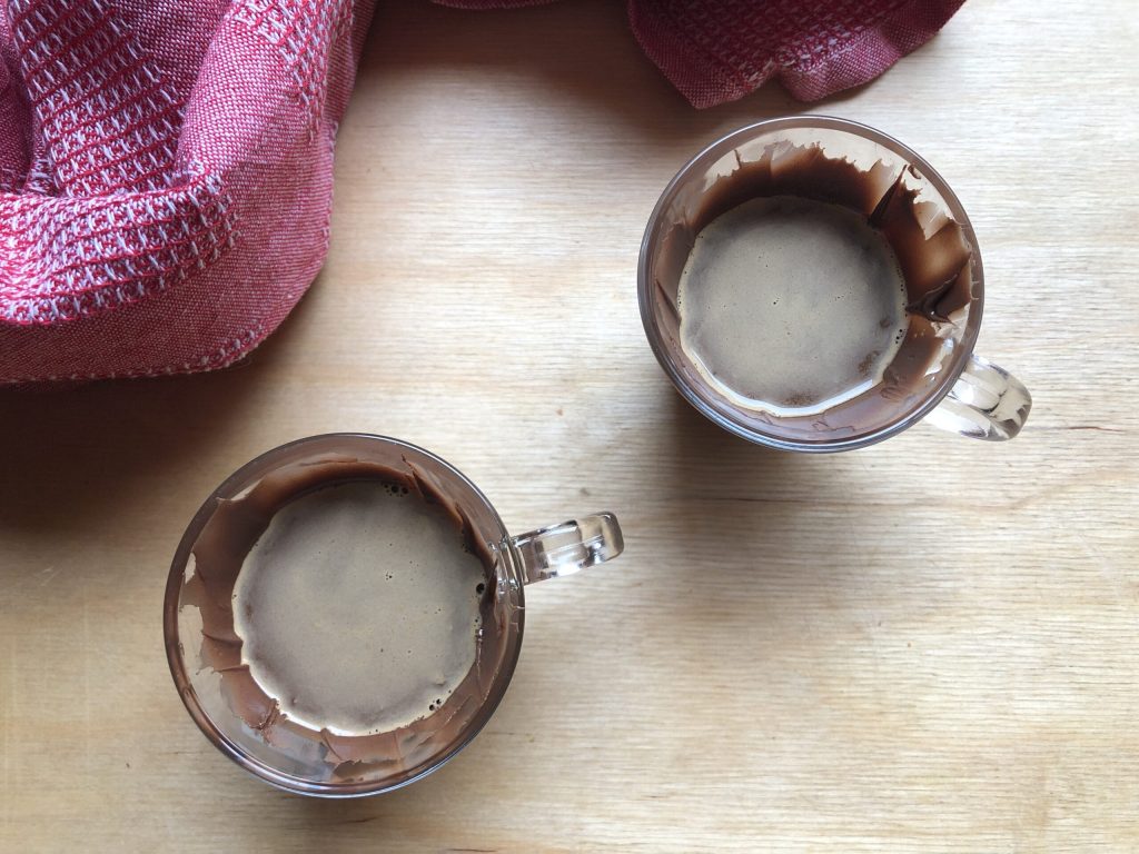 Para esta receta yo he preparado los dos expressos con la máquina, pero podéis usar tranquilamente el café de la moka: lo importante es que esté bien caliente, así la crema de avellanas se derretirá perfectamente.