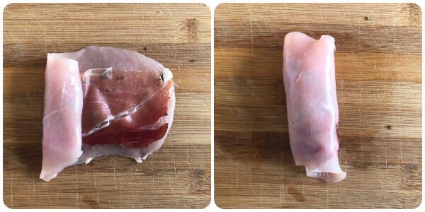 A este punto, enrollar la loncha formando un rollo. Proceder de la misma forma hasta terminar los ingredientes.