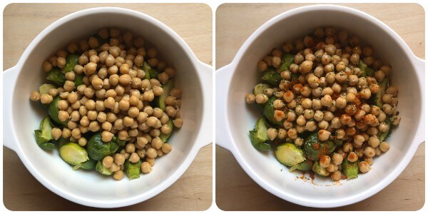 Ingredientes para las coles de Bruselas y garbanzos asados