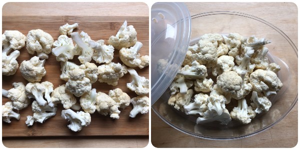 • Separa la coliflor en ramitos, lávalos y cocínalos al vapor durante 10 minutos. Deben quedar tiernos pero aún firmes. Si se ablandan demasiado luego no quedarán crujientes. Para comprobar la cocción perfecta pinchadlos con un tenedor: debe entrar sin que se deshagan.