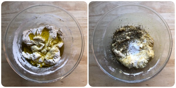 Cuando la harina haya absorbido el líquido, incorporar el aceite y mezclarlo con la masa.