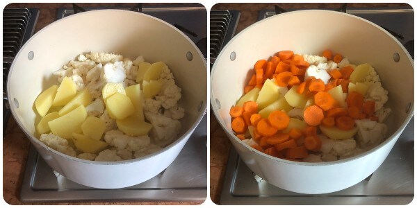 Luego añadir la coliflor, la patata y las zanahorias.