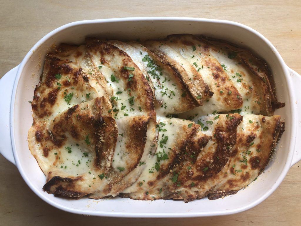 Cocinar las crepes de alcachofas y nueces en horno estático precalentado a 180° durante 20 minutos más unos minutos en modo grill hasta que estén perfectamente doradas. Sacarlas del horno, espolvorearlas con perejil y servirlas inmediatamente, bien calientes. ¡Disfruta! Paola