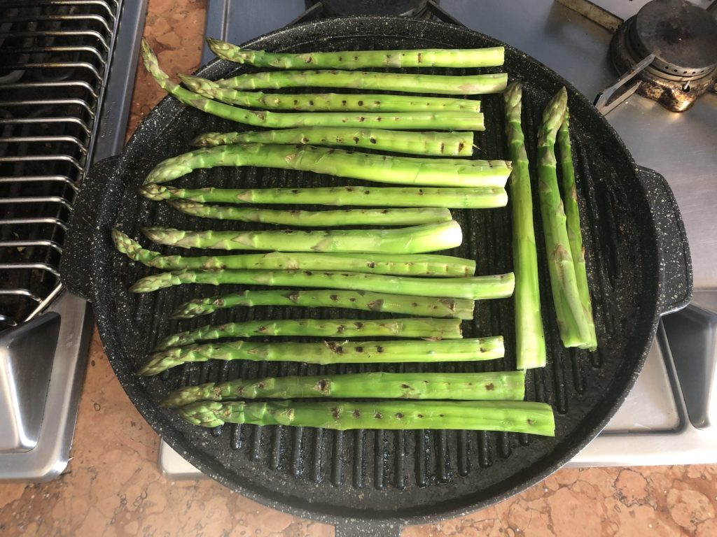 • Finalmente, colocar los espárragos a la parrilla en el plato de servir, salarlos ligeramente, espolvorearlos con el picadillo aromático y rociarlos con un hilo de aceite. Servirlos de inmediato, bien calientes. ¡Disfruta! Paola