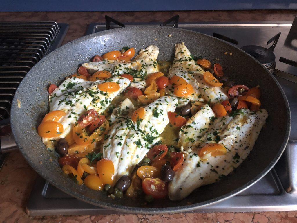 Dejar que se impregne del sabor por un instante al fuego, luego apagar y servir inmediatamente los filetes de dorada con tomatitos, bien calientes. ¡Disfruta! Paola