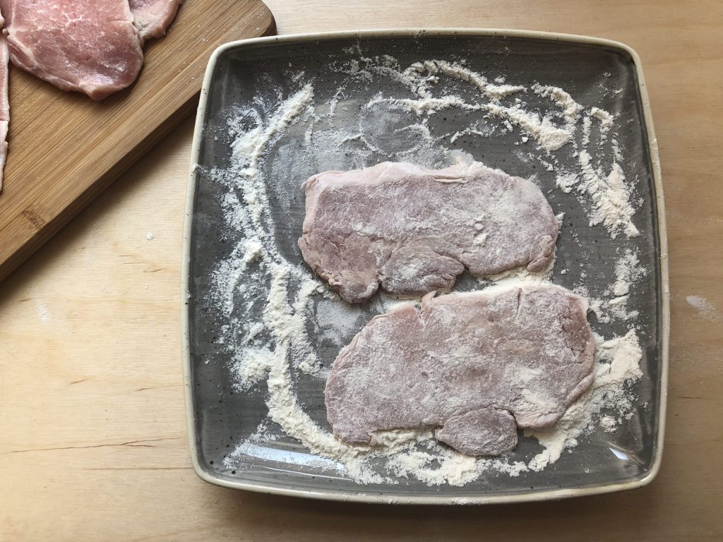 Luego pasarlos por harina y sacudirlos para eliminar el exceso.