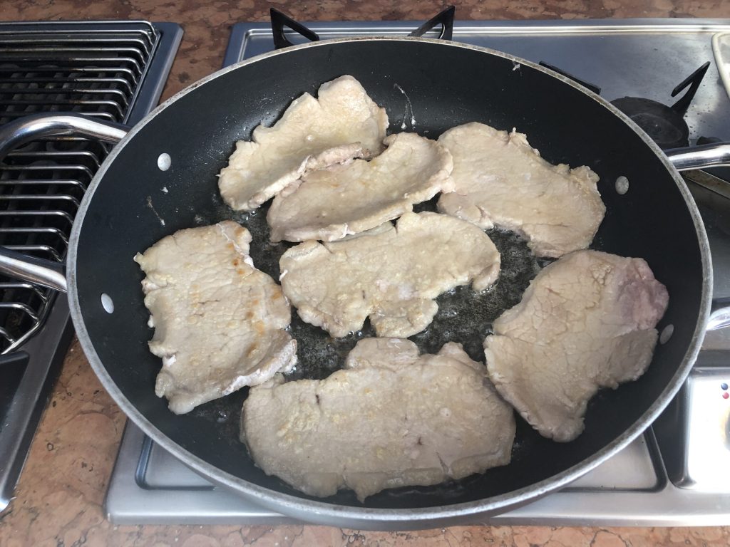 En una cacerola grande, calentar la mantequilla y el aceite antes de colocar las escalopas en una sola capa.