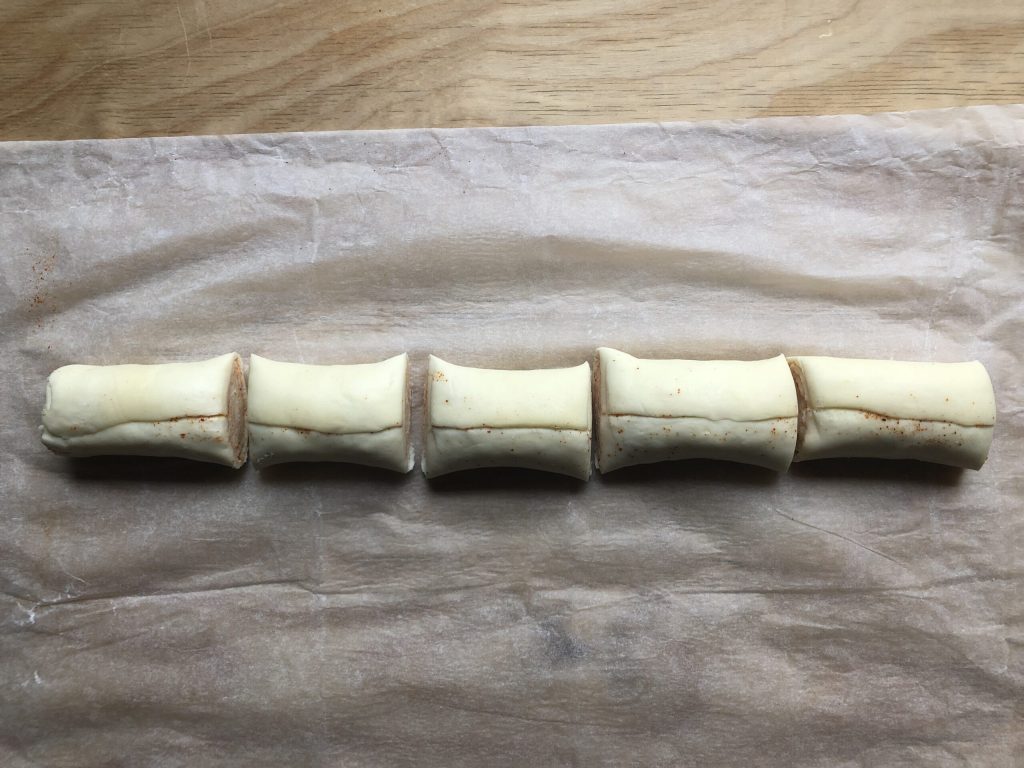 Pasado este tiempo, cortar el rollo en cinco tronquitos.