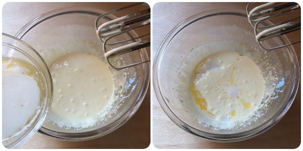 Luego añadir la mantequilla ya templada y trabajar de nuevo con las batidoras.