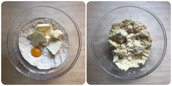 Luego añade la mantequilla en trozos y la yema (reserva la clara) y comienza a amasar.