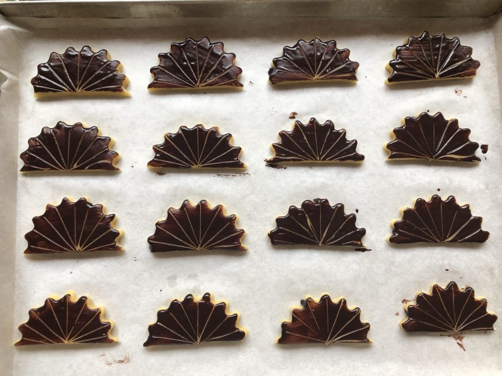 En este punto, pincelar cada galleta con la mezcla de cacao.