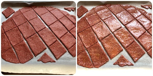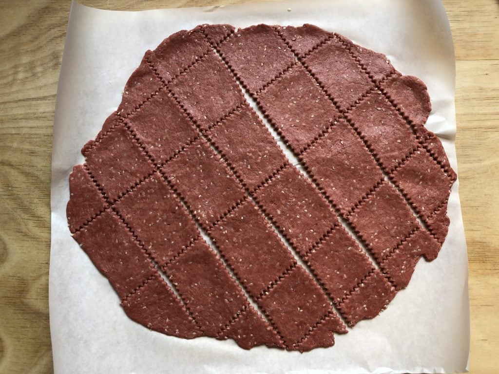 Yo he hecho la masa de estas galletas saladas rosas con la Thermomix, pero cualquier otro procesador de alimentos está bien. También podéis prepararlas a mano mezclando los ingredientes primero en un bol y luego en la mesa de trabajo. Si las hacéis a mano, tamizad las harinas y mezclad bien los ingredientes secos antes de añadir el puré de remolacha, el aceite y el agua.