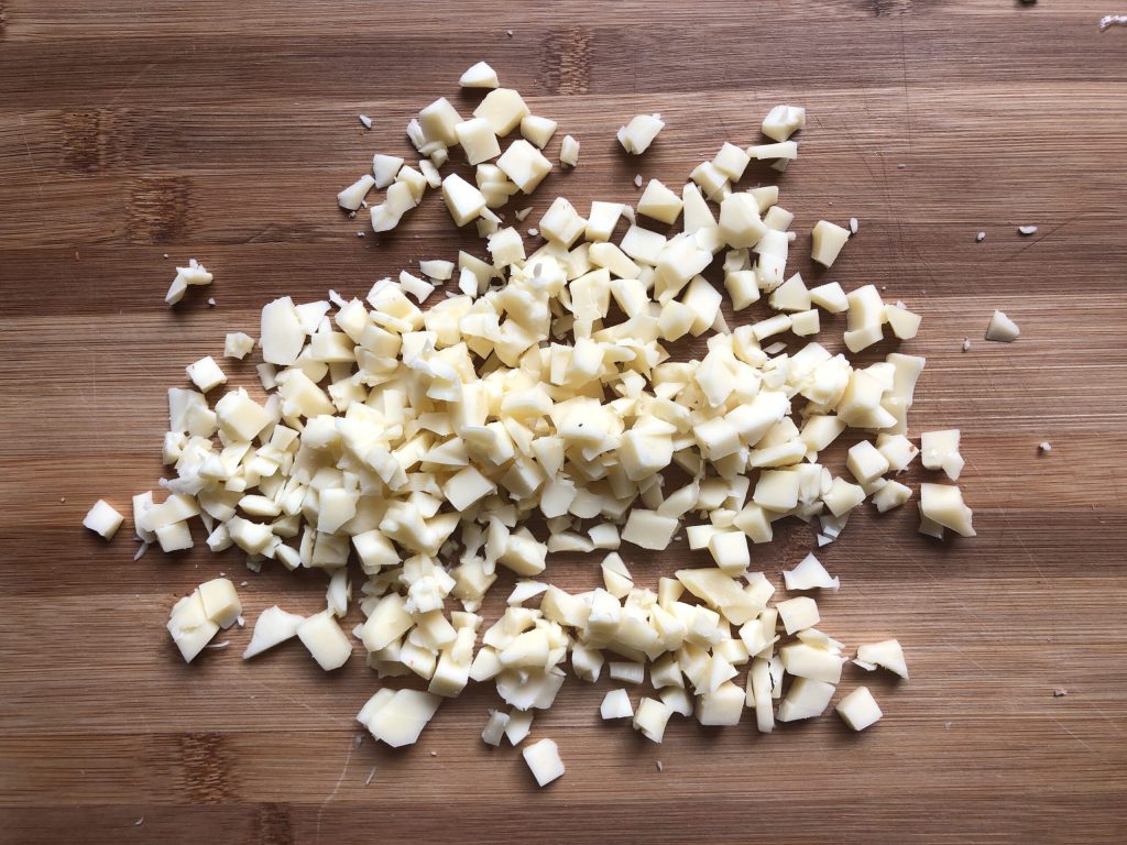 Mientras tanto, cortar la fontina en trocitos.