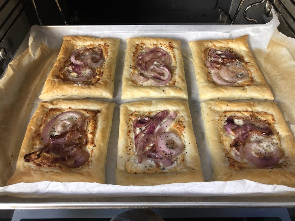 Cocina los hojaldres de cebolla en horno estático precalentado a 180° durante 15/20 minutos o hasta que estén ligeramente dorados. Déjalos enfriar antes de servirlos. ¡Disfruta! Paola