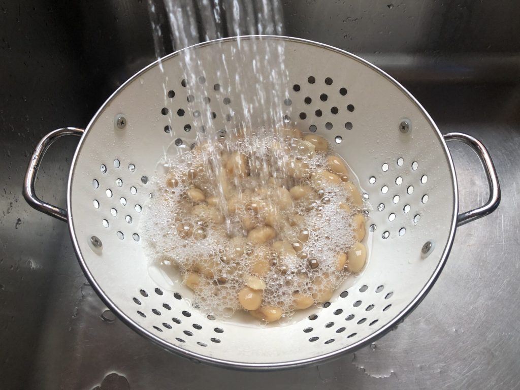 • Escurrir las judías blancas de España de su líquido de conservación y enjuagarlas abundantemente bajo agua corriente.