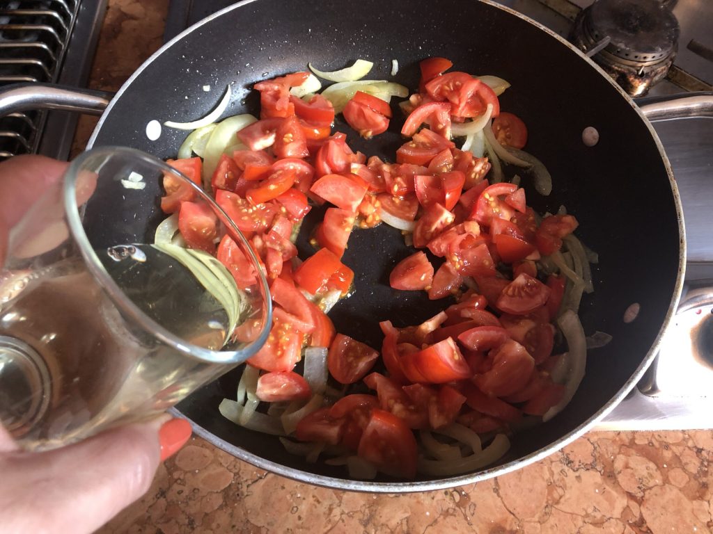 • Mezclar, luego mojar con el vino blanco.