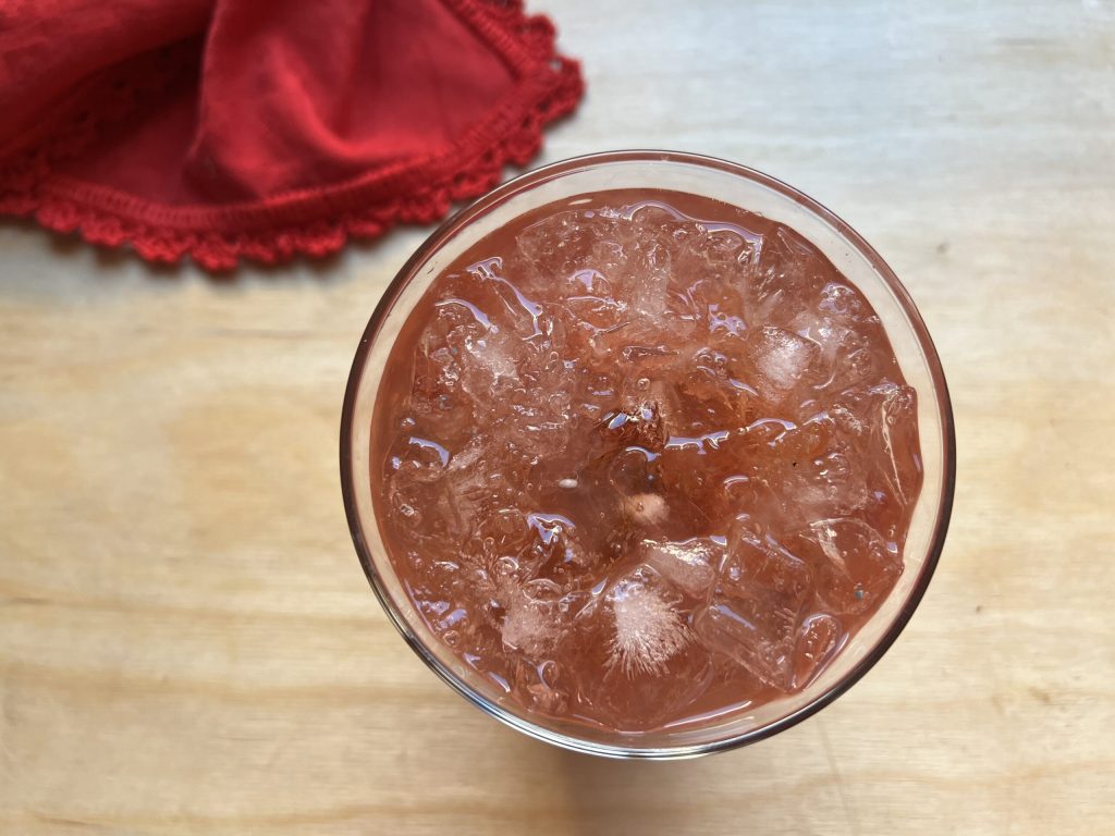 En este punto rellenad el vaso con hielo picado grueso: no se usan los cubitos enteros.