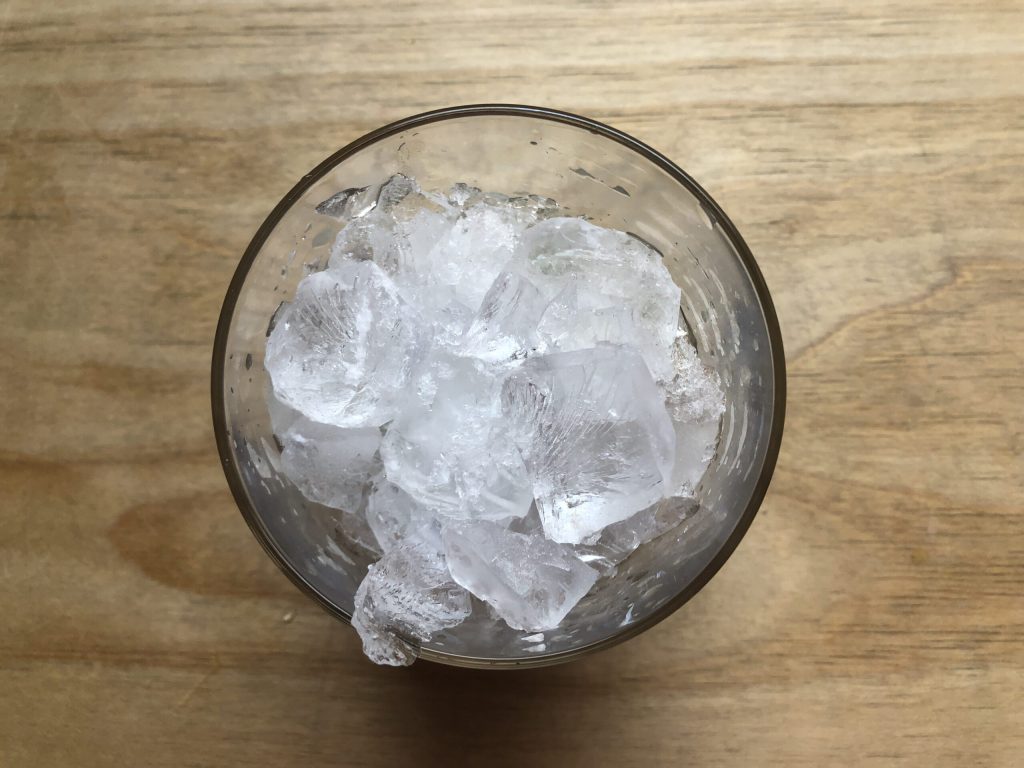 Llenar el vaso con hielo picado. Los cubitos enteros clásicos no son adecuados. Un truco muy casero que utilizo es ponerlos en un paño limpio y romperlos con una maza. Obtendrás migajas gruesas y trozos un poco más grandes.
