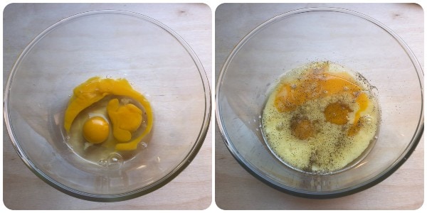 En un bol grande, cascar los huevos, luego añadir el aceite, la leche, una generosa pizca de sal y un toque de pimienta negra.