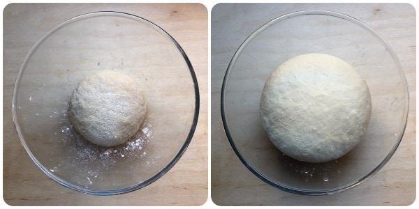 Pasarla a la mesa de trabajo ligeramente enharinada y trabajarla unos instantes con las manos hasta que quede lisa. Darle forma de bola.