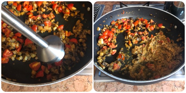 Preparación de la pasta con berenjenas a la campesina