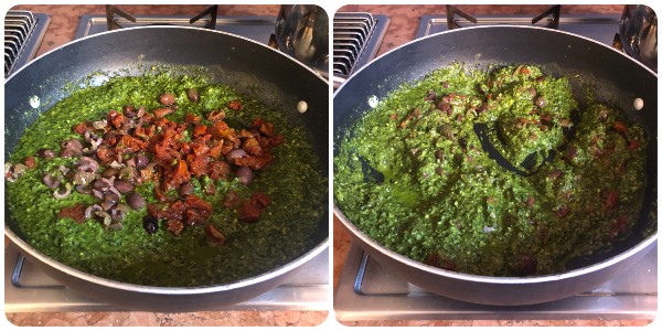 La cantidad de los ingredientes (pesto, aceitunas y tomates secos) puede aumentarse o reducirse según el gusto personal.