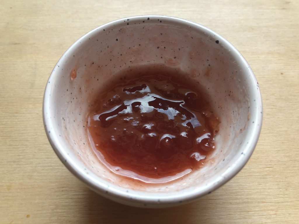 En un cuenco, mezclar la mermelada (o confitura) elegida con una cucharada de agua para ablandarla.