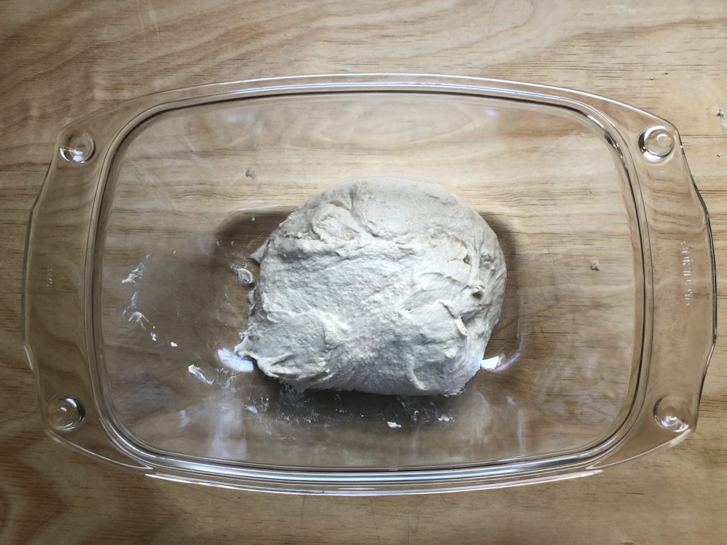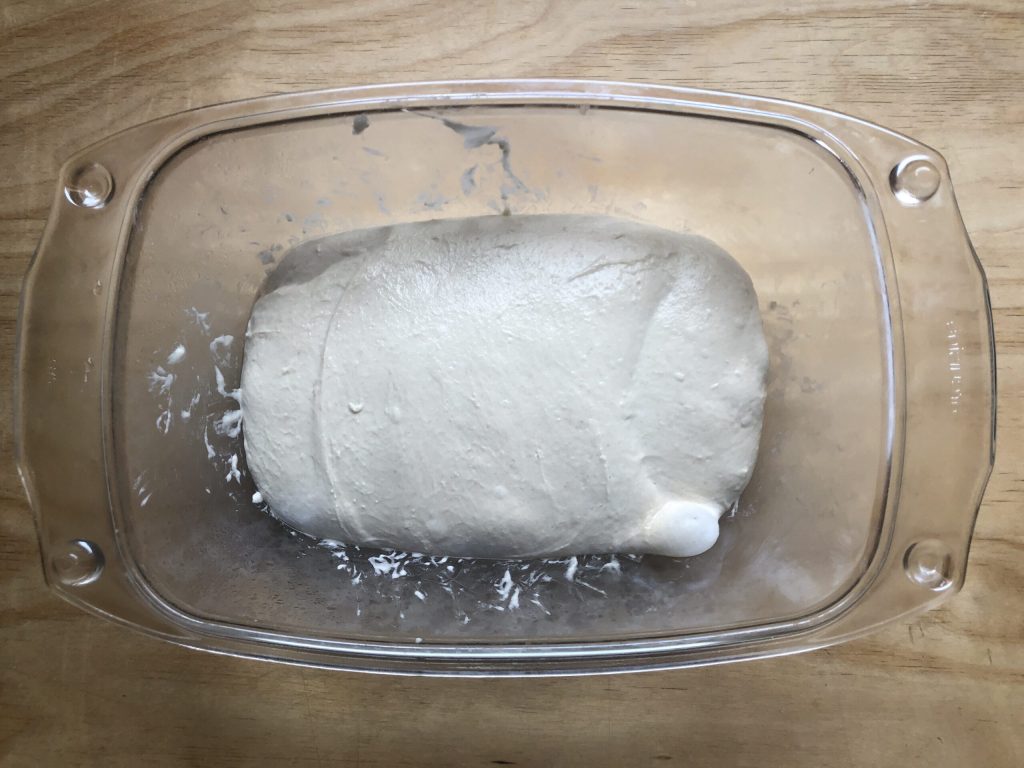 Resumiendo: masa – 30 minutos de reposo – primer pliegue – 30 minutos de reposo – segundo pliegue – 30 minutos de reposo – tercer y último pliegue.