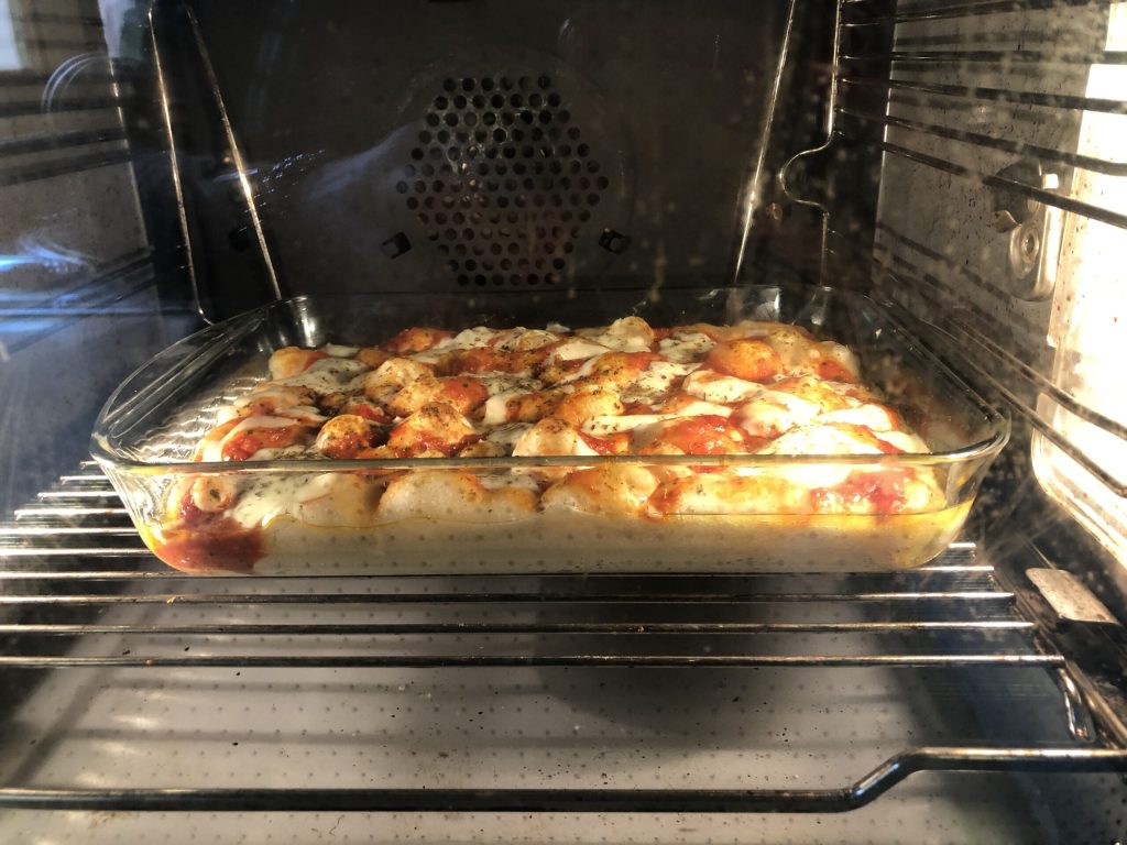 Sacarla del horno, aromatizarla con hojas de albahaca y servirla bien caliente. ¡Disfruta! Paola