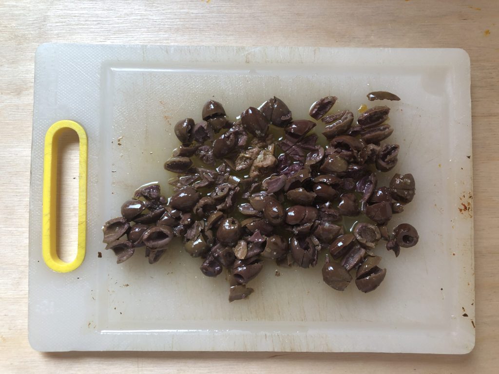 • Picar groseramente las aceitunas taggiasche.
