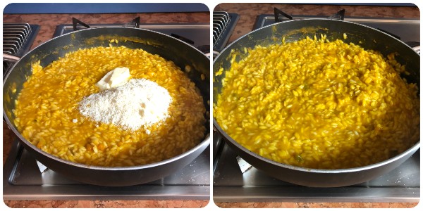 • Al final de la cocción, mezclar el risotto con el queso rallado y la mantequilla. Ajustar de sal, si es necesario.