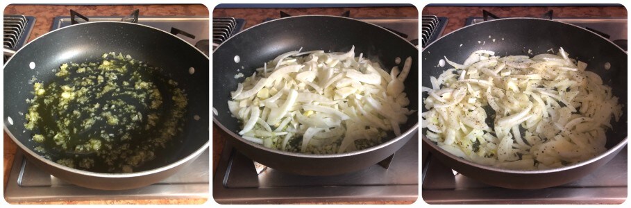 En una cazuela amplia, calentar unas cucharadas de aceite y dejar que la chalota se ablande a fuego lento. Luego añadir los hinojos, sazonar con sal y pimienta al gusto y continuar la cocción durante unos minutos, removiendo a menudo.