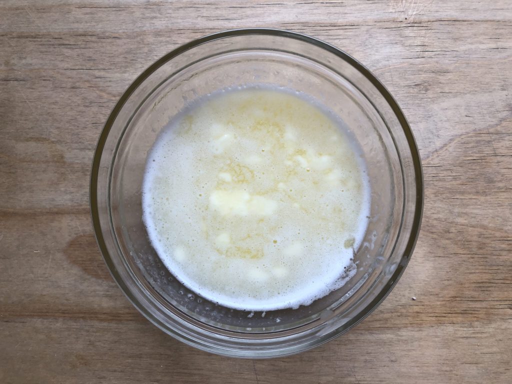 Derretir la mantequilla al baño maría o en el microondas y dejarla templar.