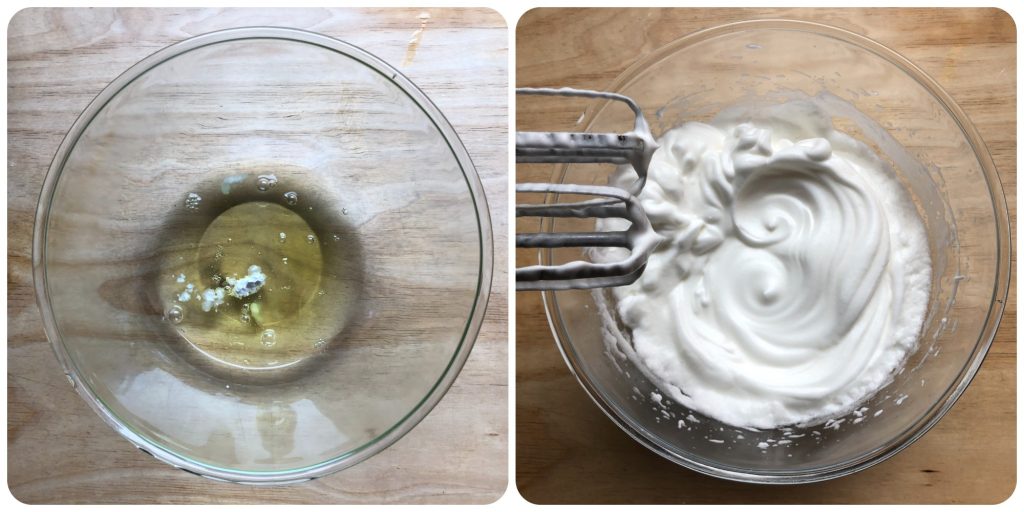 Añadir una pizca de cremor tártaro a las claras y montarlas a punto de nieve con las batidoras eléctricas. Ponerlas a un lado. Si no encuentras cremor tártaro, puedes sustituirlo con algunas gotas de limón. Sin embargo, si deseas comprarlo, lo encuentras en línea haciendo clic AQUÍ.