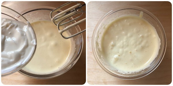 Ahora añadir el yogur y seguir trabajando con las batidoras eléctricas.